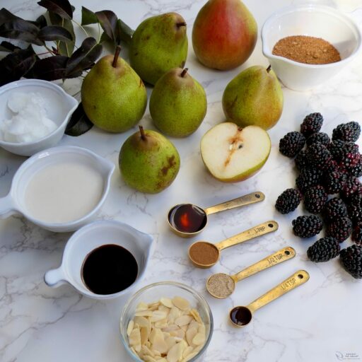You can also use Comice pears, which we did, but leave the skin on for these pears as the flesh is more delicate for baking, adding a natural, rustic charm to the dish.